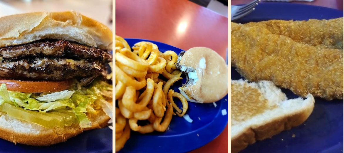 Popular dishes include the Catfish Dinner, Chicken Strip Dinner, and Steak Fingers. Each dish showcases local flavors and is served fresh. Don't forget to try the delicious desserts.